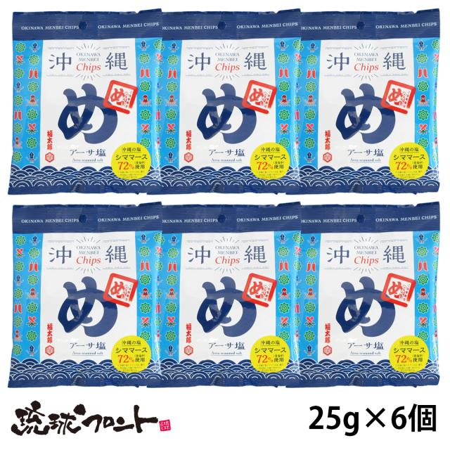 【送料無料】 沖縄めんべいチップス アーサ塩 (25gx6個セット) メール便 ご当地 めんべい 沖縄 お土産 アーサ 塩 おつまみ 限定