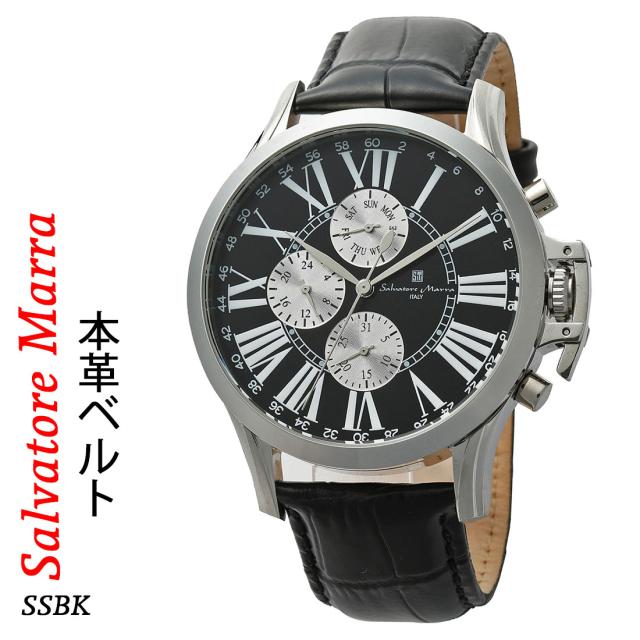 腕時計メンズ 【Salvatore Marra】サルバトーレマーラ ウォッチ レザーベルト アナログ カレンダー 24時間計 マルチファンクション SM23101-SSBK |