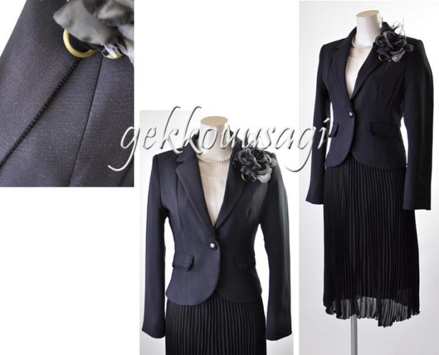 SALE 7号 レディース セレモニースーツ スカートスーツ 上品キラキラ感 レース使いジャケット 黒プリーツスカート ママスーツ おしゃれ 入学式 卒業式 結婚式 発表会 お宮参り 顔合わせ 黒 ネイビー(sb3f)781&305MT