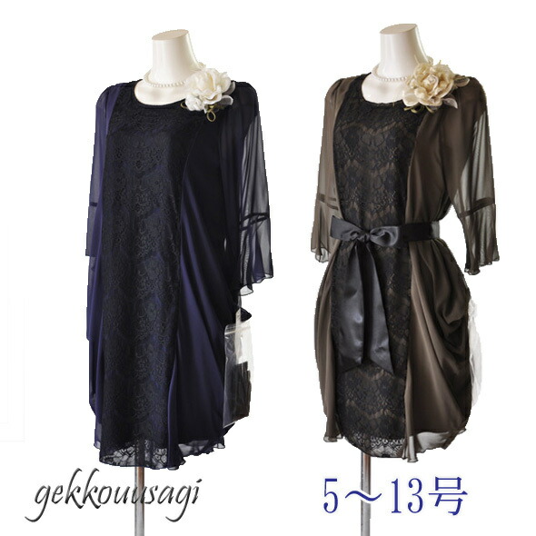 レディース フォーマル セレモニー パーティー 結婚式 お呼ばれ 披露宴 発表会 二次会 発表会 食事会 式典 13号ドレス 七分袖 ワンピース チュニック 袖口ゆったり シフォン レース かっこいい お洒落 着やせ 服装 親族 衣装 リボン付 (bl3yg)4102
