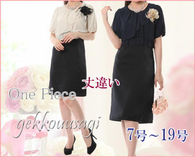 レディース パーティードレス重ね着風ワンピース 冠婚葬祭 パーティー ブラックフォーマル 小さいサイズ 7号-15号 大きいサイズ 着丈2パターン 五分袖 シフォン 異素材ワンピース 半袖 カジュアル ドレス セットアップ 単品 108-S/109-L(HG)