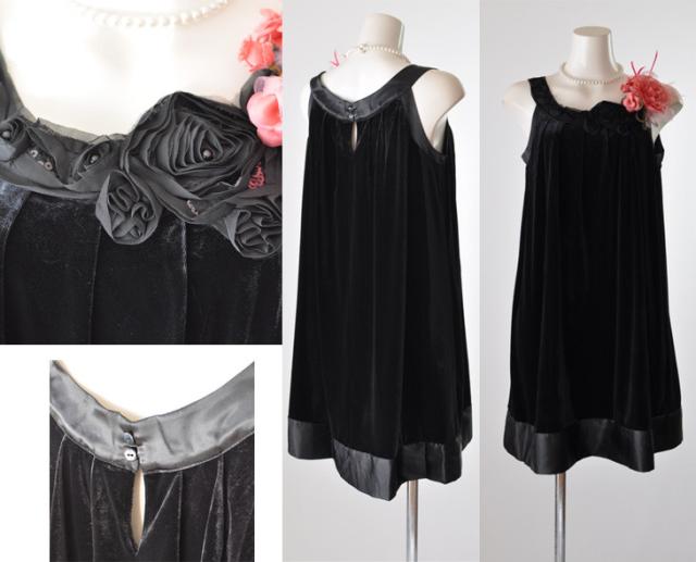 レディース パーティー ドレス Mサイズ 9号 ベロア ベルベット 薔薇モチーフ ワンピース 着心地抜群 ストレッチ 体型カバー 妊婦 マタニティ ドレス 結婚式 披露宴 お呼ばれ 食事会 顔合わせ 謝恩会 パーティー 発表会 ブラック 黒 (NK4)110