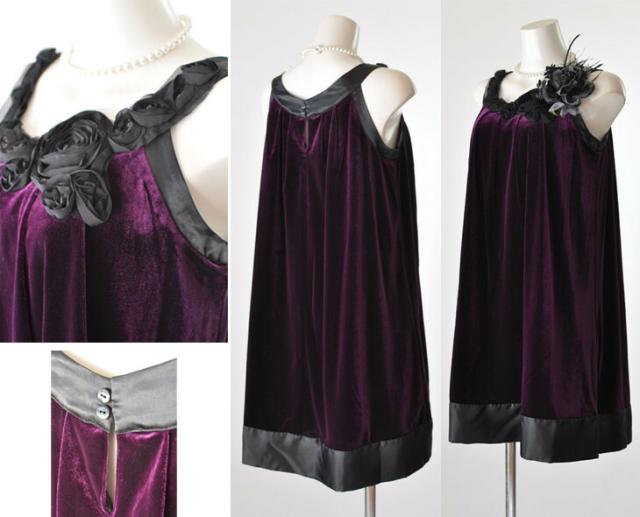レディース パーティードレス ベロアドレス パーティー ワンピース ドレス 7号 9号 11号 13号 薔薇モチーフ ストレッチ素材 体型カバー 妊婦 マタニティ 結婚式 披露宴 セレモニー 発表会 舞台 カラオケ 黒 ブラック パープル 服装 衣装 (au9)91699