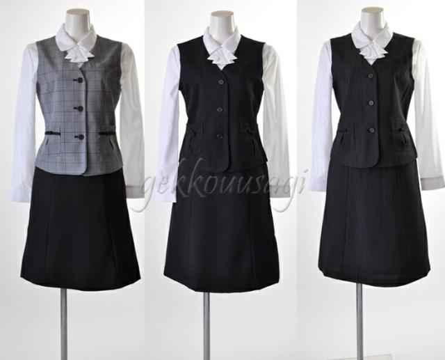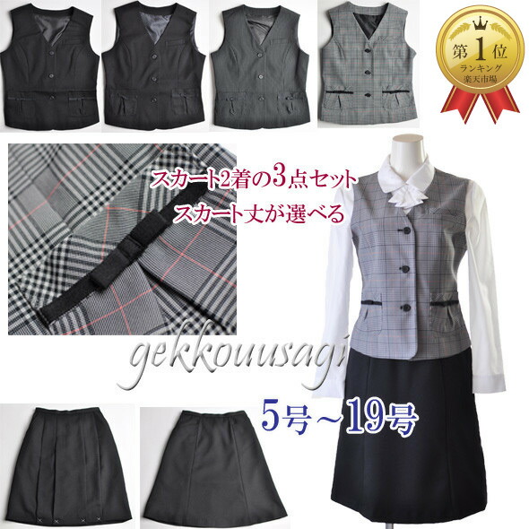 事務服3点セット 選べるベスト1着とスカート2着のセット(スカート2デザイン)