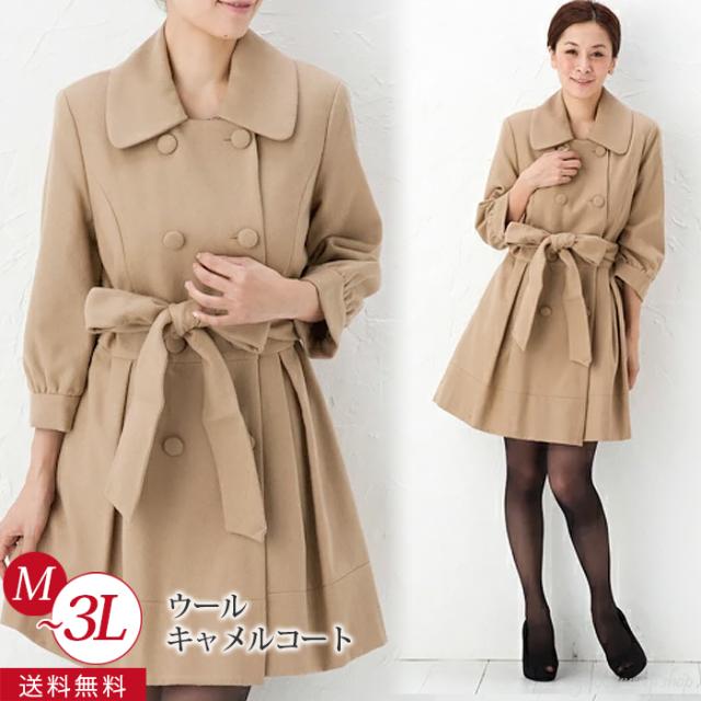 レディース 秋コート クラシカル トレンチ M-3L 大きいサイズ ベージュ キャメル 七分袖 膝丈 ウエストリボン付 Aライン アウター コート デート 女子会 お出かけ 食事会 パーティ 結婚式 お宮参り 通勤 通学 ac360