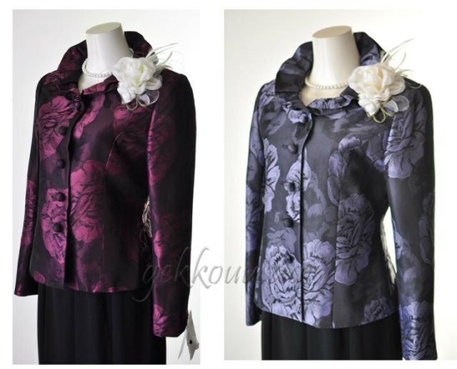 ジャケットは光沢感のある素材に大きめの花柄が映える大人デザイン。