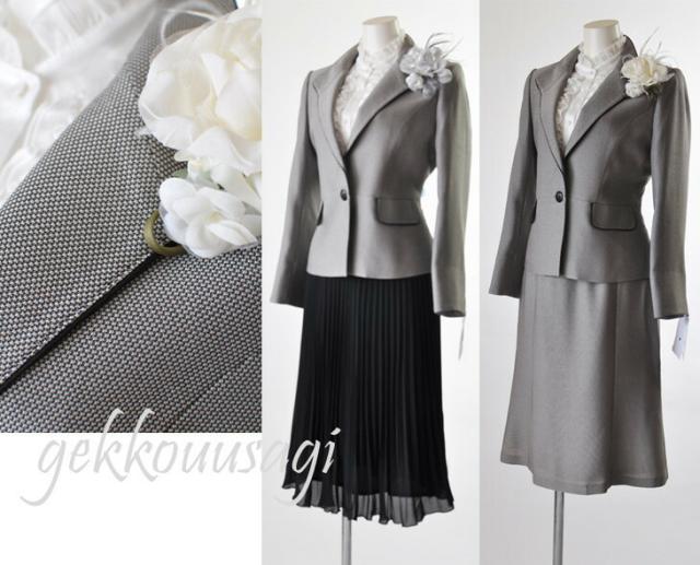 レディース 3点 スカートスーツ 2スカート ウエストゴム入り ジャケット 黒プリーツスカート バーズアイ 卒業式 七五三 お宮参り ママ 母 祖母 スーツ 服装 (am3y/bl3y)5562/2513