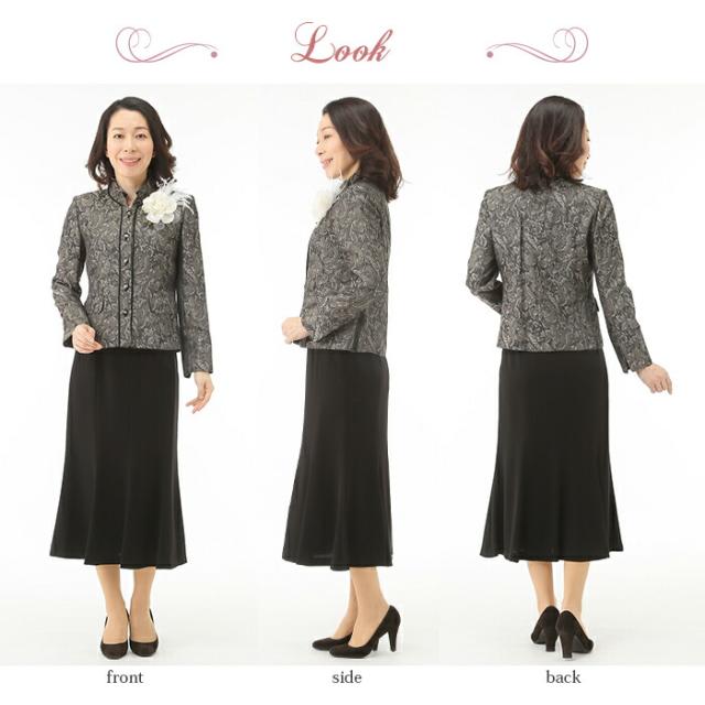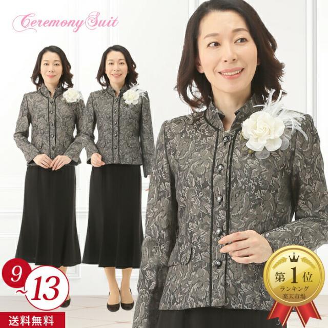高品質の日本製素材使用 上品花柄ジャガード ハイグレードスーツ ゆったりミセスサイズ ミセスロングスカートスーツ 披露宴 パーティー 式典 同窓会 ミセススーツ入学式、卒業式、結婚式などのセレモニーやお祝いの席などにおすすめの商品です。