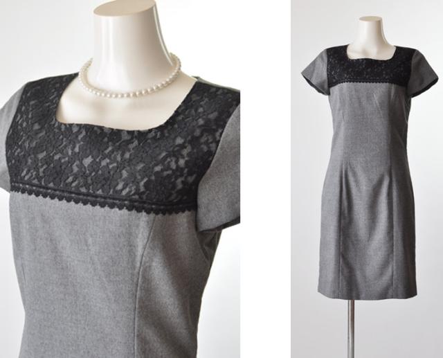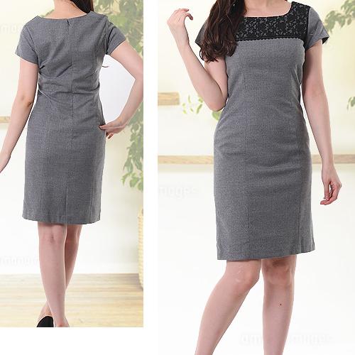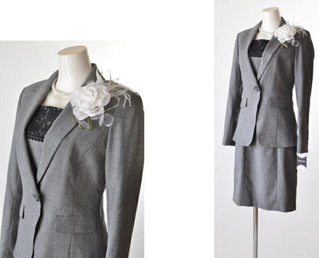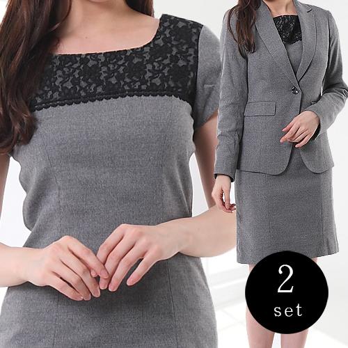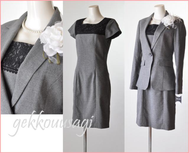 ワンピーススーツ 卒業式 入学式 ママスーツ おしゃれ 胸元レース ワンピース ビジネススーツ リクルート 就活 通勤 グレー 結婚式 発表会 お宮参り 顔合わせ 七五三 レディース ミス ミセス 母 秋 冬 スーツ 服装 衣装 制服 (am10r4)5528