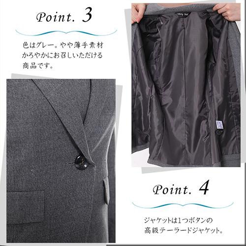 色はグレー。やや薄手素材の春秋にお召しいただきたい商品です。