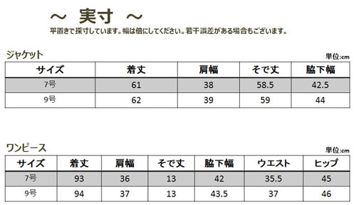 7号、9号サイズのワンピーススーツです。
