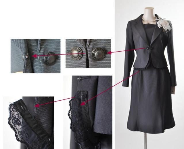 カギホック1個留め。2つボタンは飾りボタンです。