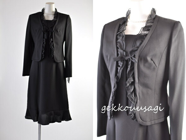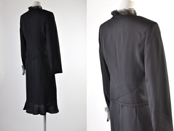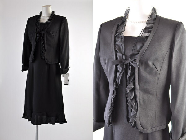 SALE 7号 サイズ ブラックフォーマル ワンピーススーツ 半袖ワンピース 取り外せるフリルジャケット マーメイドライン アンサンブルスーツ 礼服 喪服 葬儀 法要 3回忌 7回忌 卒業式 入学式 ママ ミセス 夏 オールシーズン 001