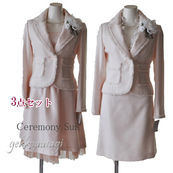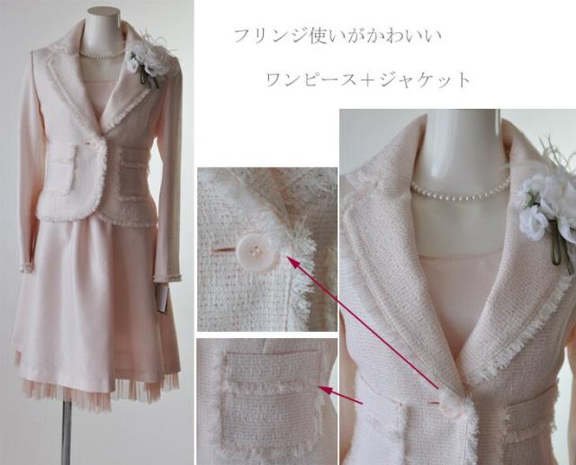 3点組 スーツ 人気 15号 おしゃれ ママスーツ 3点セット セレモニー アンサンブル 薄ピンク フリンジジャケット シャンタン ワンピース 入園式 入学式 結婚式 披露宴 お宮参り 七五三 お呼ばれ 顔合わせ 服装 ママ 母親 フォーマル 着やせ (au2f2/b)304