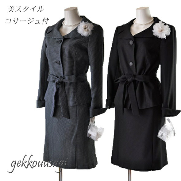 セール レディース スカートスーツ フォーマル対応 百貨店品質小さいサイズ 7号/9号 ウエストリボン付スカートスーツ 卒園 卒園 卒業式 入学式 喪服 礼服 ドット/黒 白コサージュ付 (sb2f3f/AU1F19) 1250203 / 12510232