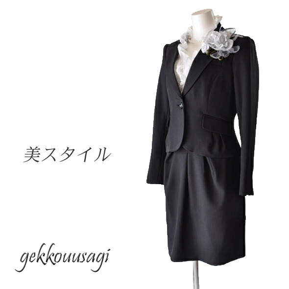15号 レディース スカートスーツ ストレッチ素材 美シルエット ビジネス テーラードジャケット タイトスカート ブラック フォーマル リクルート スーツ ママ OL 秋 (am4ms)1002