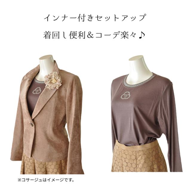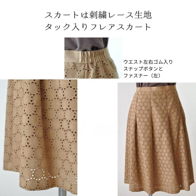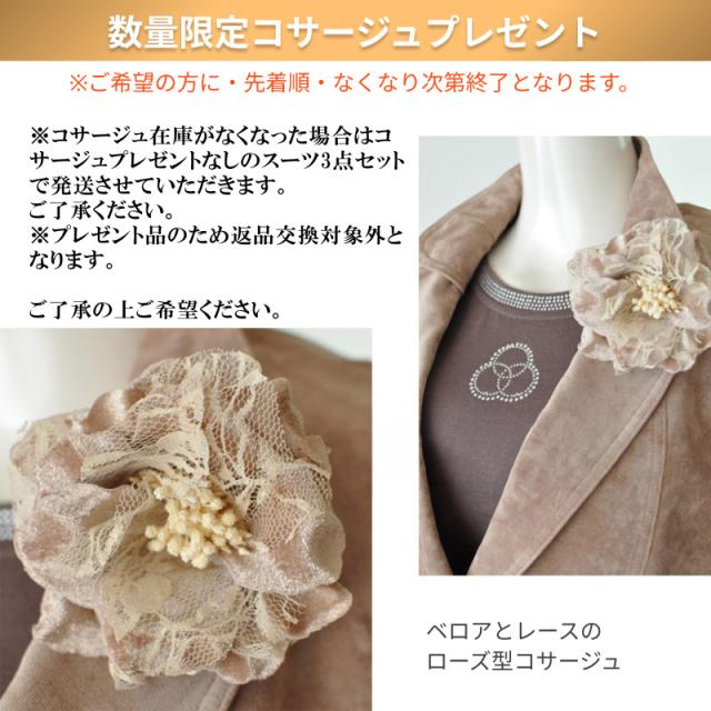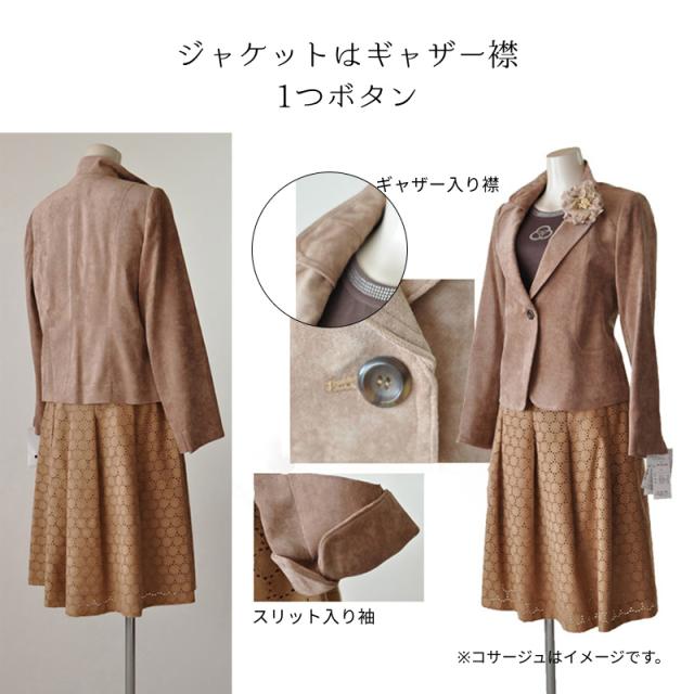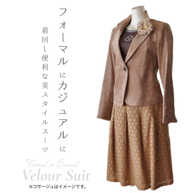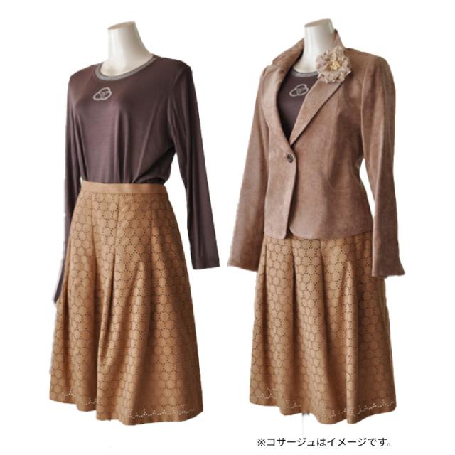 LL/4L/5L 大きいサイズ 着回しベロアジャケット 3点セットスーツ 刺繍フレアスカート ベージュ 素材感 カジュアル フォーマル ミセス 20代 30代 40代 50代 60代 70代 コサージュプレゼント(am3y2)3505