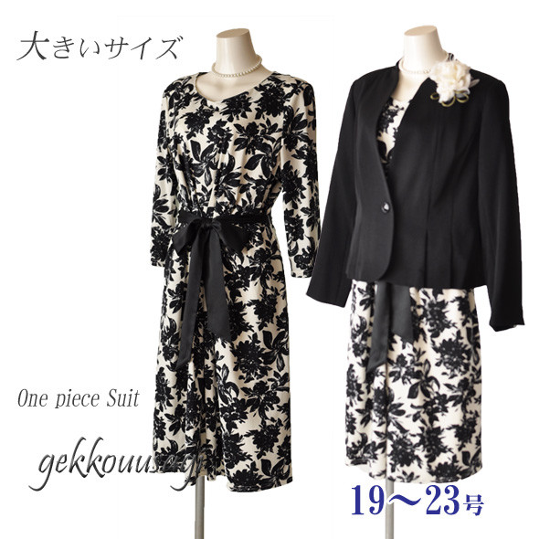 大きいサイズ限定 19号/21号 サイズが合えばお得 ワンピーススーツ 洗えるスーツ 着回し フォーマル カジュアル レディース 母親 ミセス 30代 40代 50代 60代 70代 黒 花柄 ストレッチ素材 通勤 発表会 (BL2f3y5)9174