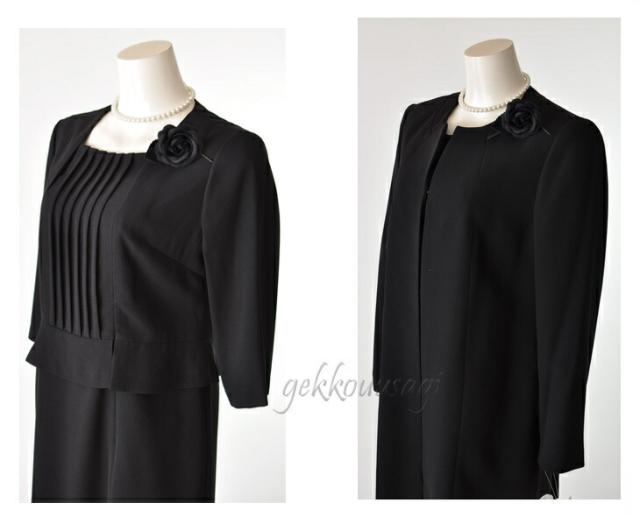 \今だけプレゼント付/ レディース ブラックフォーマル ワンピーススーツ 喪服 礼服 上質 冠婚葬祭 ロング丈ジャケット 七分袖ワンピース3点セット 前ファスナーで脱着 授乳も楽々 卒業式 30代 40代 50代 60代 70代 80代 母親 ミセス 祖母 親族 服装 コサージュ (bl1y2)9282