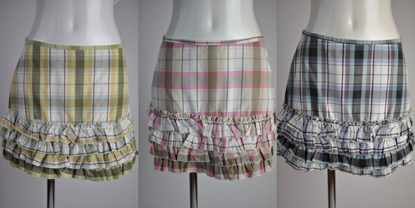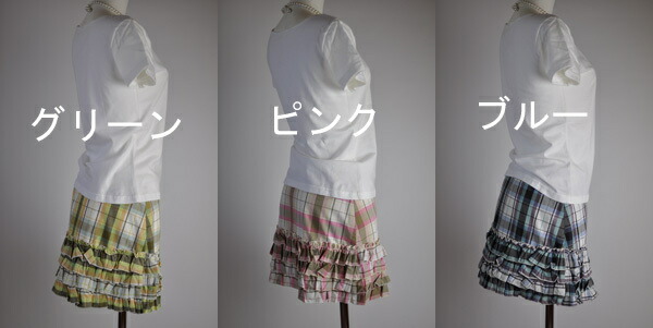レディース ミニスカート ティアードスカート チェック柄 腰スカート ミニ丈 キッズ 女の子 裾フリル 制服風 コスチューム コンパニオン コスプレ 舞台 衣装 ブルー ピンク イエロー M/L 【メール便送料370円】8307