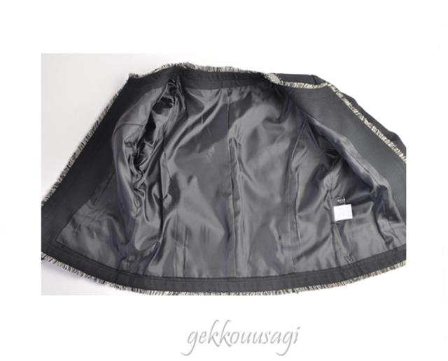 肩パット入り、袖口スリット入り。