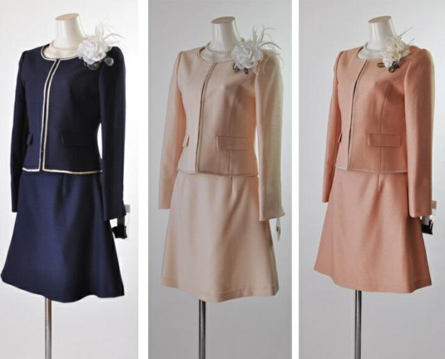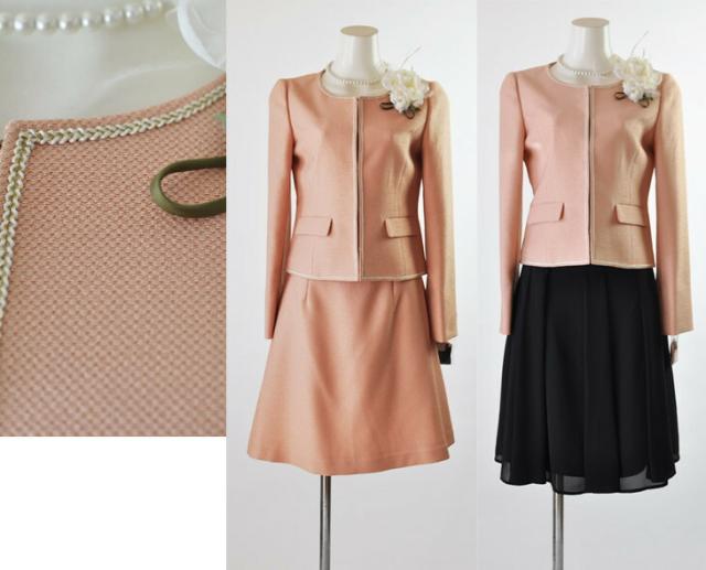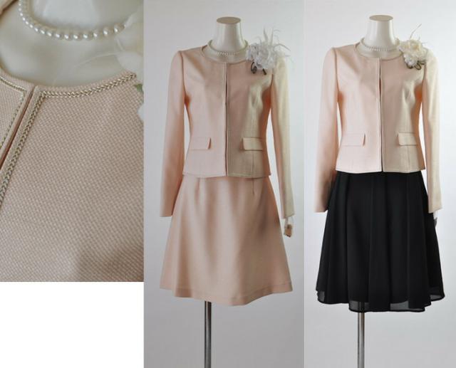 存在感のある上質生地を使用したジャケットとスカート2着の3点セット。