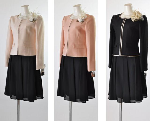 人気の 3点組 スーツ レディース ノーカラージャケット 3点セット スーツ 2スカート シフォンスカート 9号 11号 13号 卒園式 卒業式 入園式 入学式 発表会 学校行事 女子会 お宮参り ピンク・ベージュ WHITE JOOLA ホワイトジョーラ (sb2f3)4504