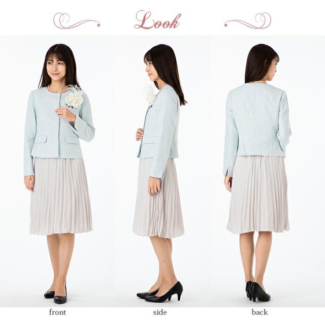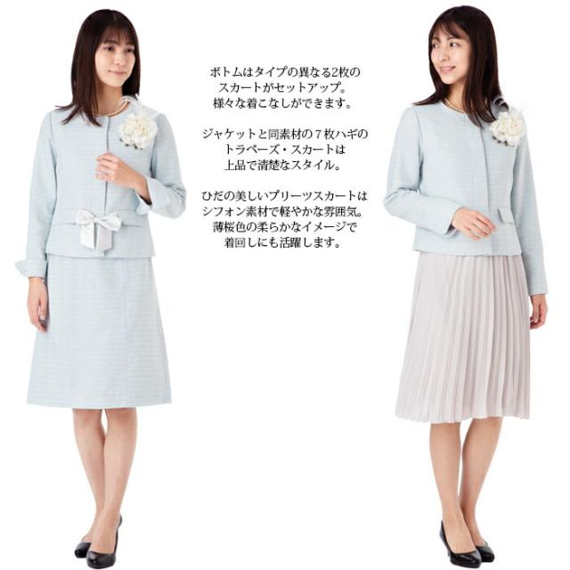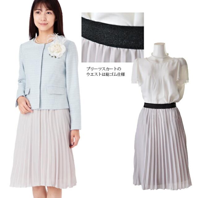レディーススーツ 3点セット スカート2枚 入学式 卒業式 ママスーツ お受験 通勤 卒園式 入園式 お宮参り きれいめ 春スーツ パステル プリーツスカート ウエストゴム 20代 30代 40代 50代 (am1r-6)728005
