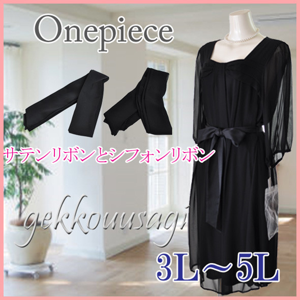 ブラックフォーマル ワンピース 喪服 礼服 3L/4L 大きいサイズ シフォン 七分袖ワンピース 黒 着やすい前ファスナー 結婚式 法事 法要 単品ワンピース 母 祖母 ミセス 80代 70代 60代 50代 40代 30代 (am1y1/10-6s)4209