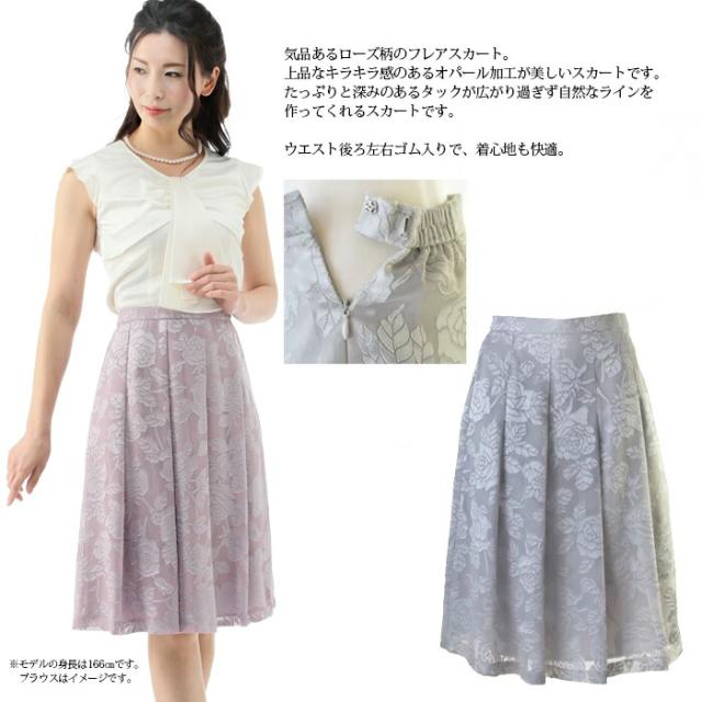 オパール加工のエレガントなバラ柄にラメが控えめに煌めく上品なスカートです。