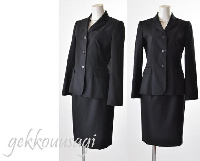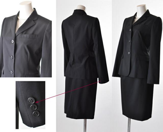 7号/9号/15号 日本製生地 薄手ウールスカートスーツ・黒 裏地背抜きストレッチジャケット ブラウスずれ防止後ろスリット入りスカート 入学式 お受験 面接 リクルートスーツ(819&811-05) (am3)nk14/15号SB2f3U