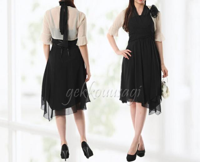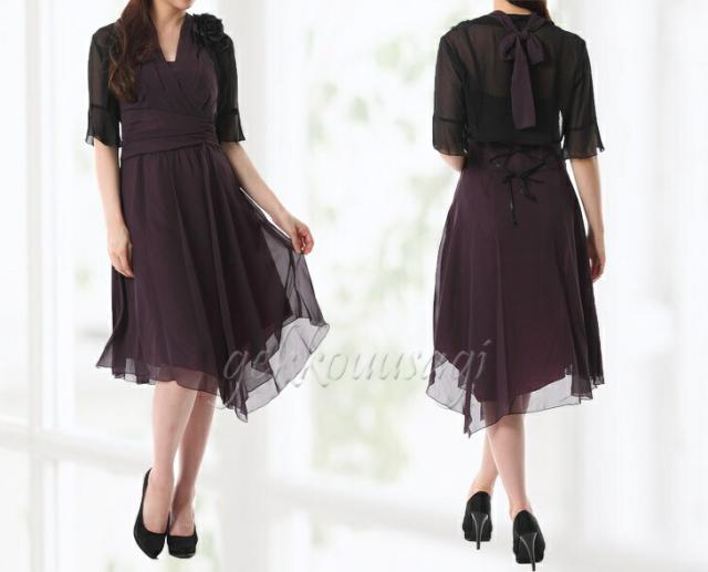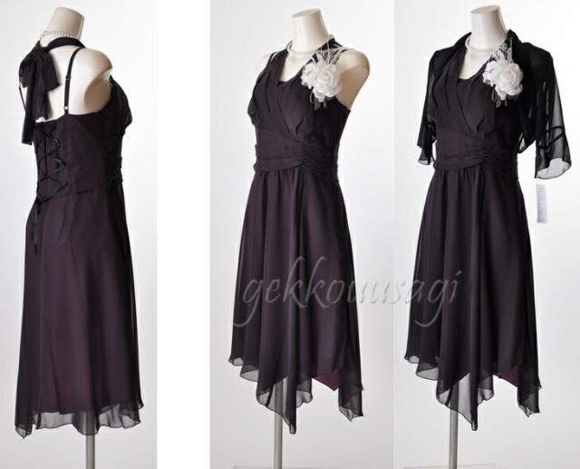 黒ボレロにはパープルワンピース、ベージュボレロには黒ワンピースのセットになります。