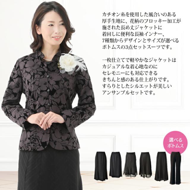 3点組 スーツ ミセス フォーマルスーツ 3点セット パンツスーツ ロングスカート お宮参り 七五三 顔合わせ 結婚式 披露宴 お呼ばれ 食事会 表彰式 発表会 卒業式 60代 70代 80代 レディース フォーマル セレモニー スーツ ママ 母 シニア 母親 祖母 叔母 服装 衣装 服 (mg)