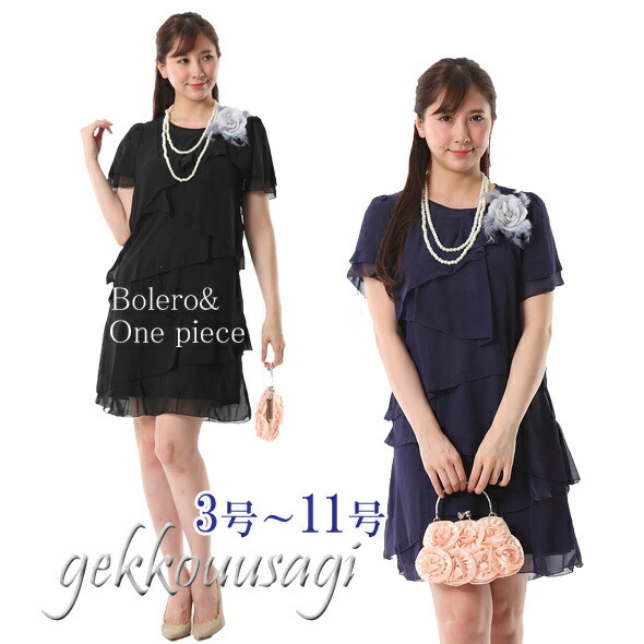 プチサイズ 小さいサイズ レディース フォーマル パーティー ボレロ付 ドレス ワンピース セット ひざ丈 20代 30代 40代 50代 60代 結婚式 謝恩会 お洒落 着やせ 7号 9号 11号 2点セット お洒落 着やせ 服装 衣装 パールネックレス(6rs/hgr)4102