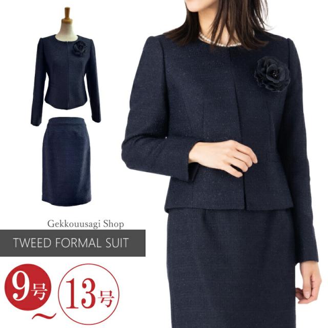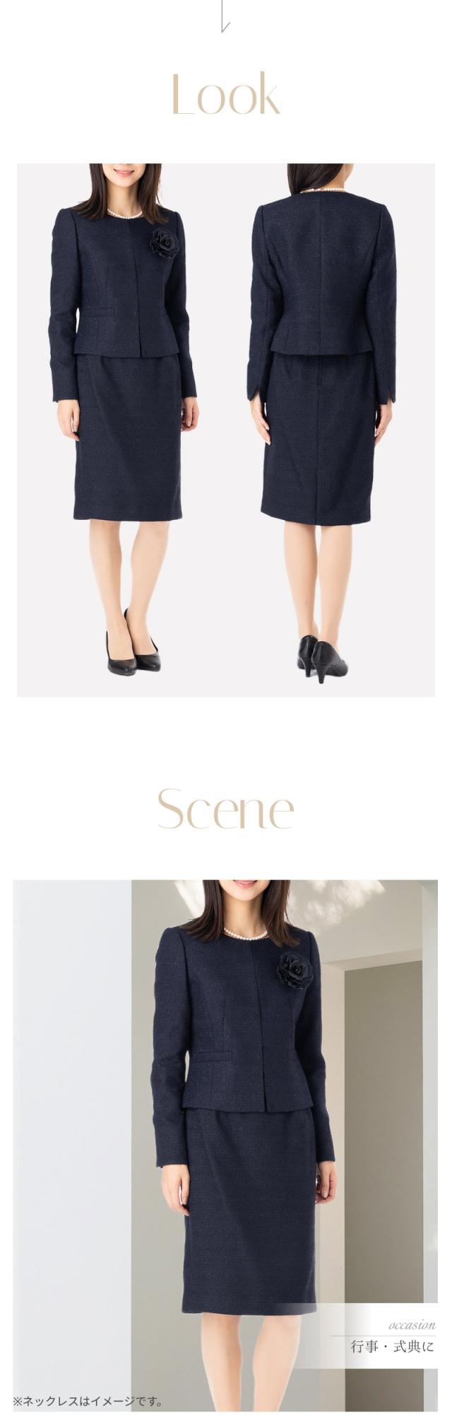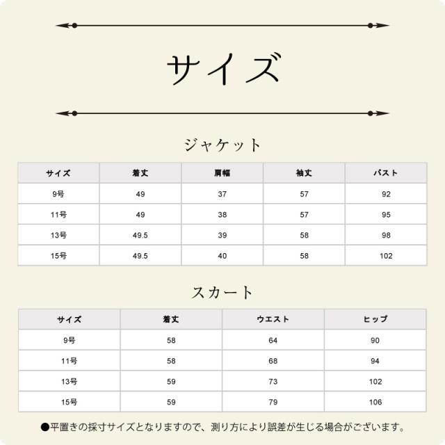 9号、11号、13号、15号サイズのジャケット・スカートの2点セットです。
