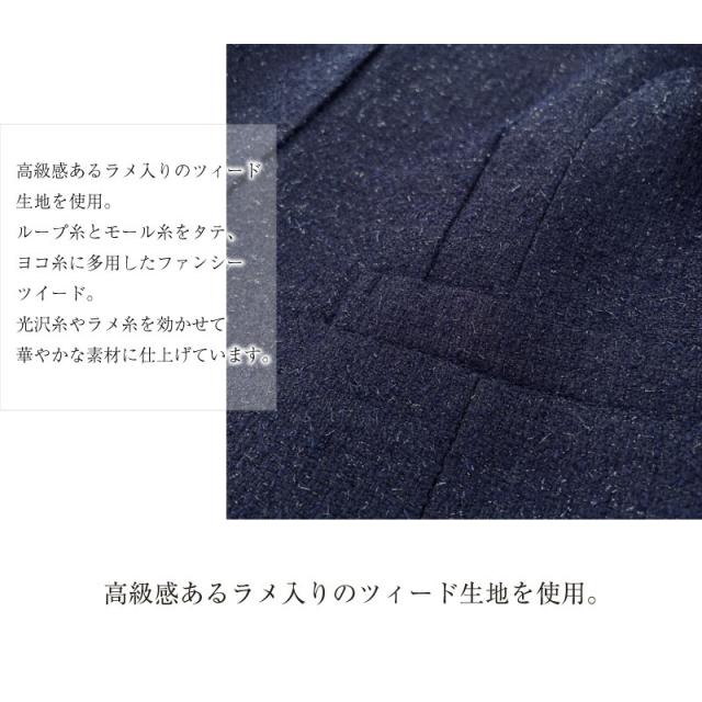 高級感あるラメ入りのツィード生地を使用したノーカラージャケット