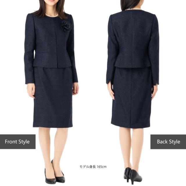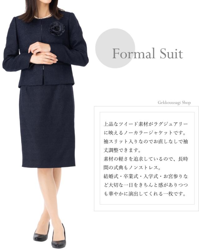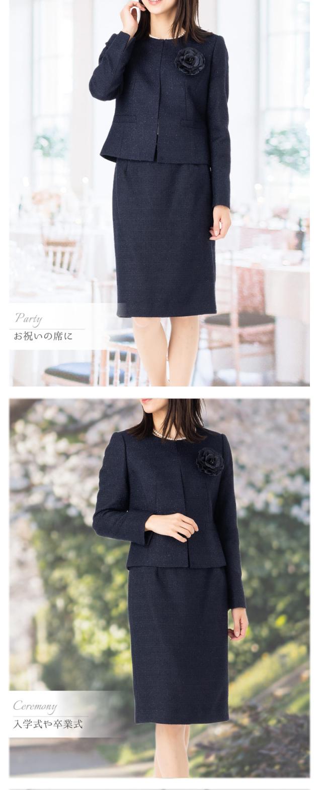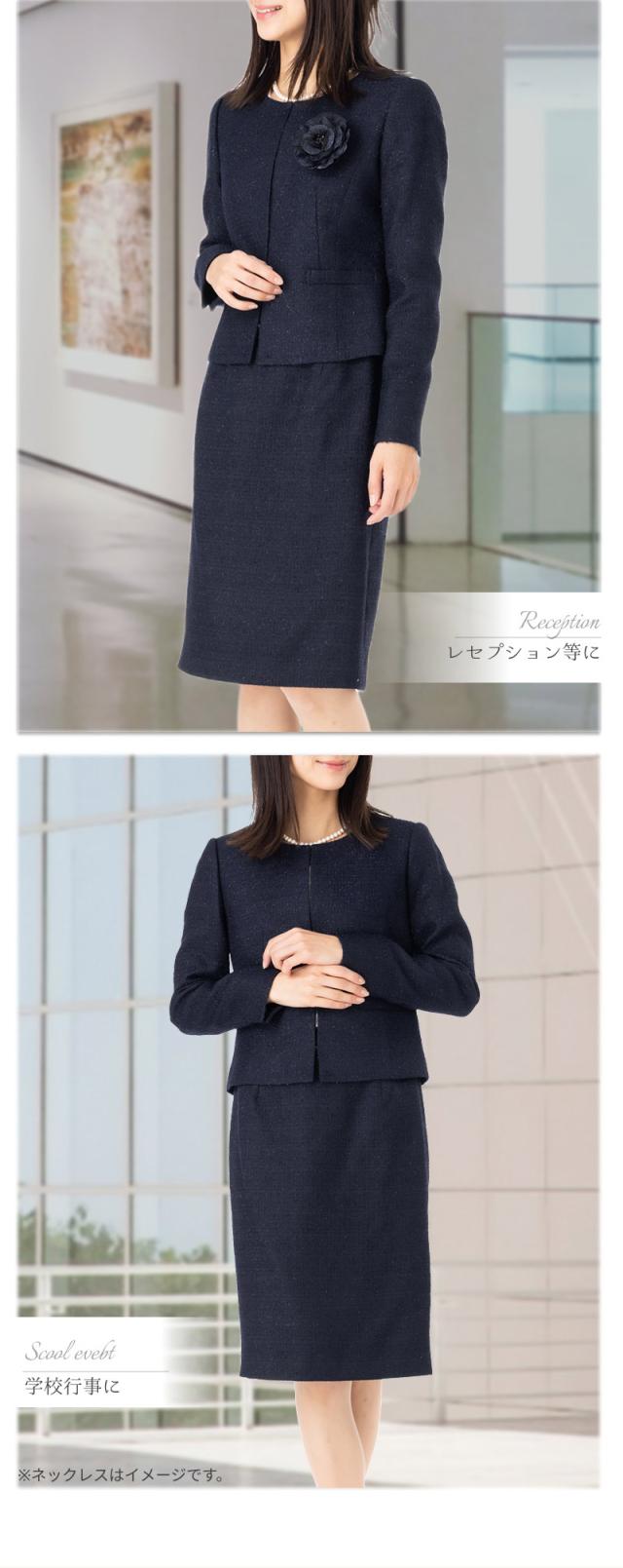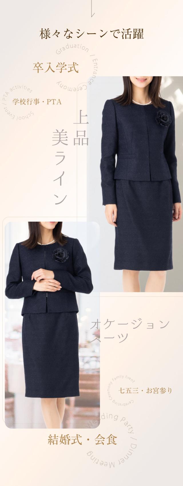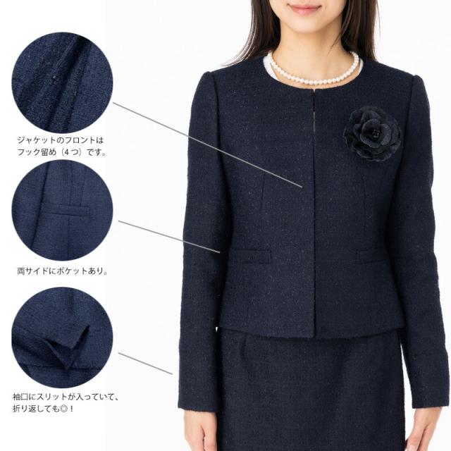 セレモニー レディース 結婚式 カラーフォーマル 50代 40代 30代 20代 結婚式 入園式 入学式 卒園式 入園式 お宮参り 顔合わせ 七五三 式典 お呼ばれ 面接 好印象 ネイビー フォーマル ママスーツ 母親 服装 高級感 ミセス ラメ入 9号11号13号15号 2点セット スーツ
