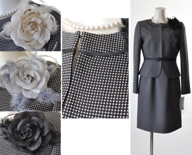 コサージュ上からベージュ、シルバー、黒