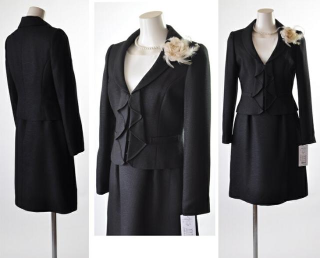 【売り尽くし】ワンピーススーツ ママスーツ 7号-13号 フリル襟ショールカラージャケット セレモニー フォーマル 卒業式 入学式 お宮参り 七五三 面接 発表会 顔合わせ ママ 母親 服装 黒 ピンク (au1a1)1135