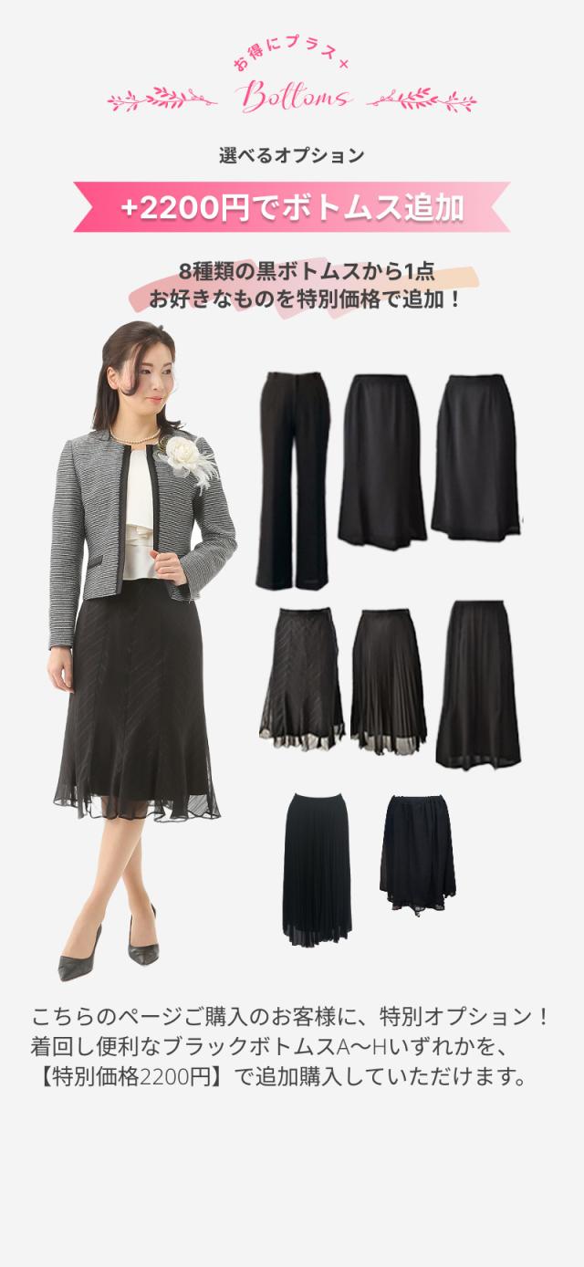 着回しに便利なブラックボトムス8種類からお好きなデザインをお得なオプション価格でご購入いただけます。