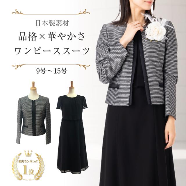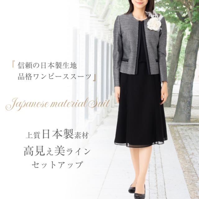 【定価の78%OFF】日本製生地 レディース ワンピース スーツ ボーダー セットアップ フォーマル セレモニー お洒落 着やせ 上品 アンサンブルスーツ 30代 40代 50代 60代 9号 11号 13号 15号 ミセス HG