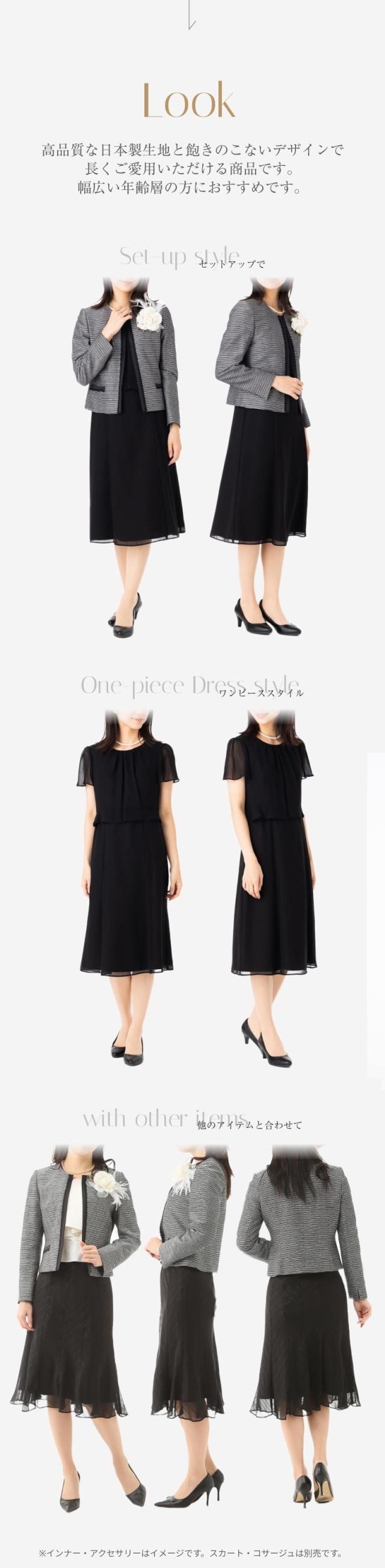ジャケット、ワンピースいずれも他のアイテムとコーディネートしやすく、着回しがききます。