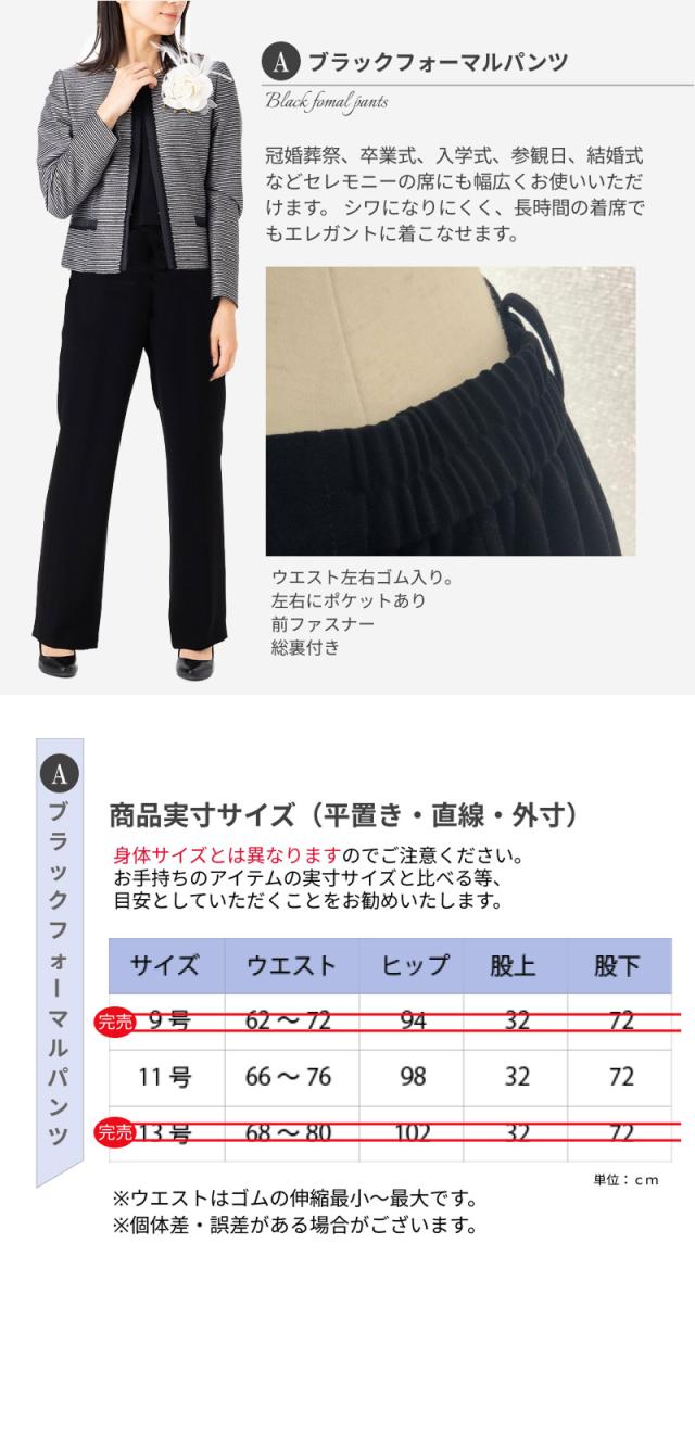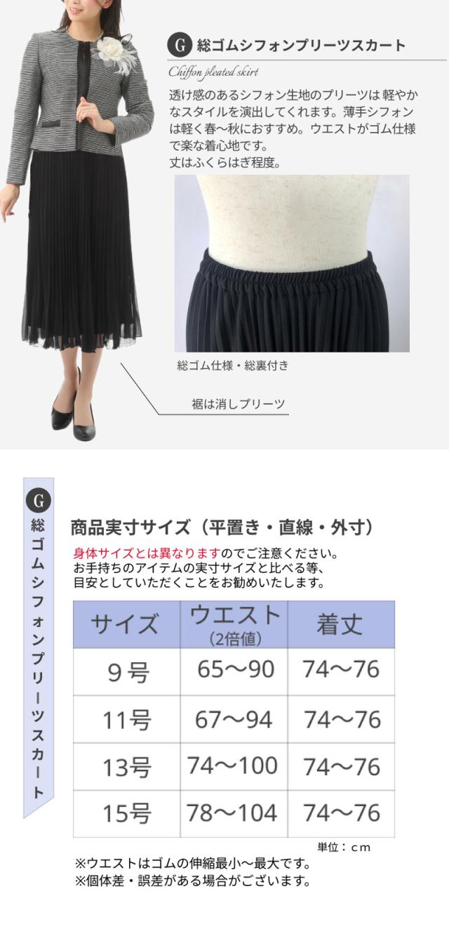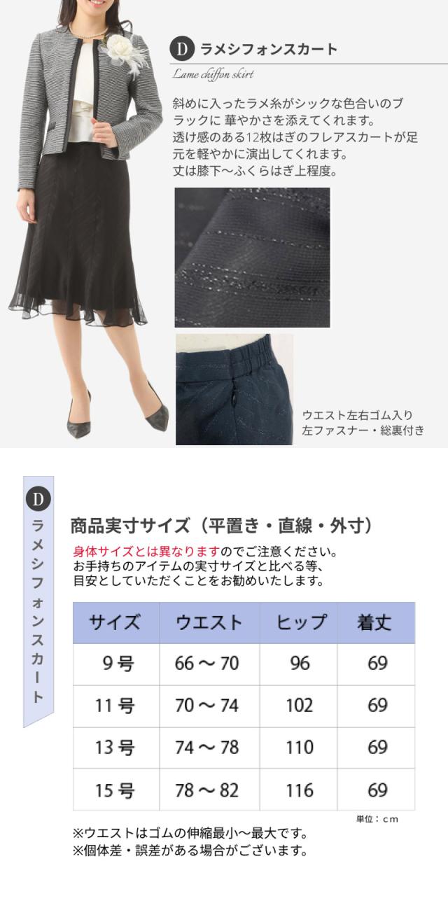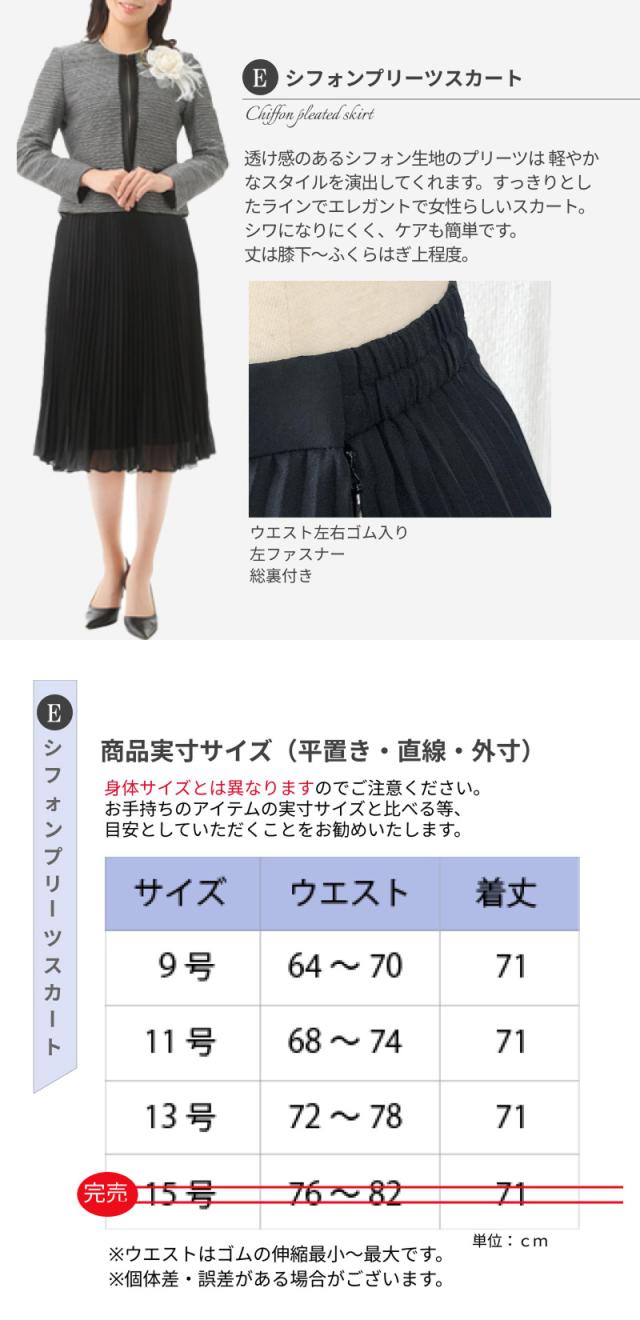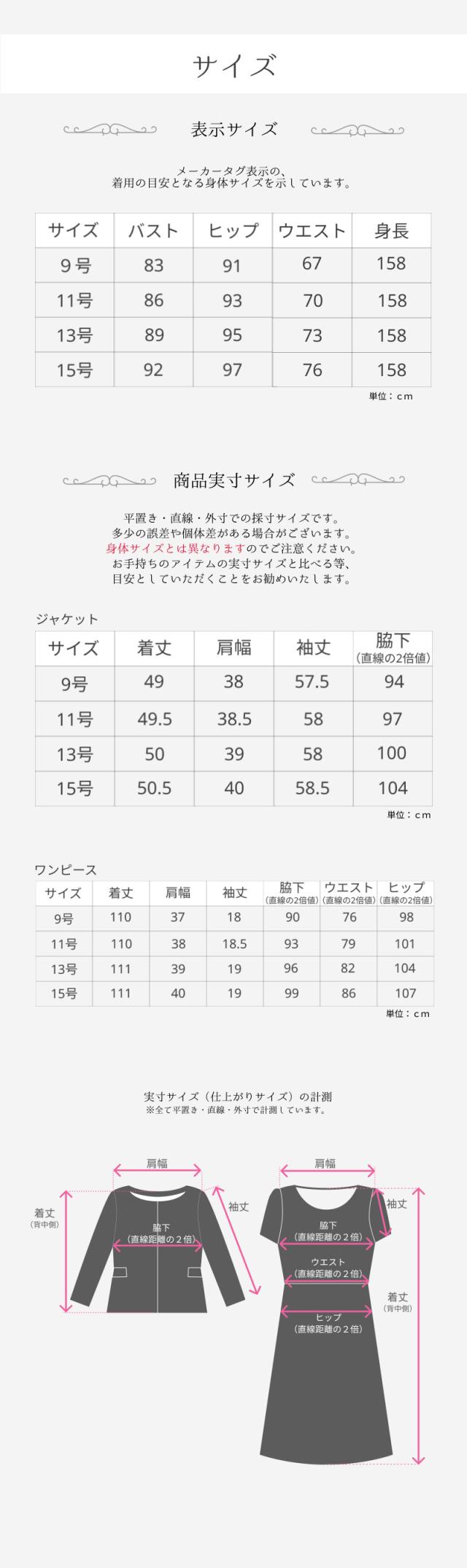 9号、11号、13号、15号サイズのジャケットとワンピースの2点セット。