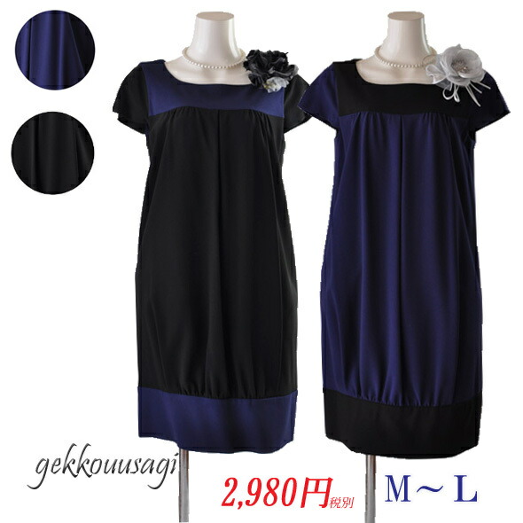 レデイース ワンピース 楽天最安値に挑戦!百貨店品質 M/L 胸上と裾切替が映える半袖ワンピース【黒・青】028 裾青/裾黒(AM6-9) 1849028