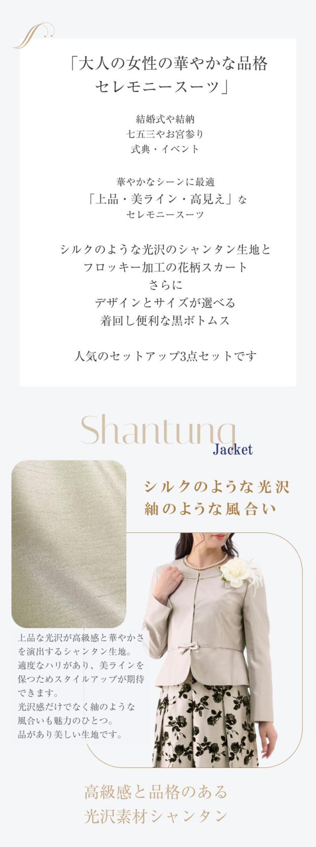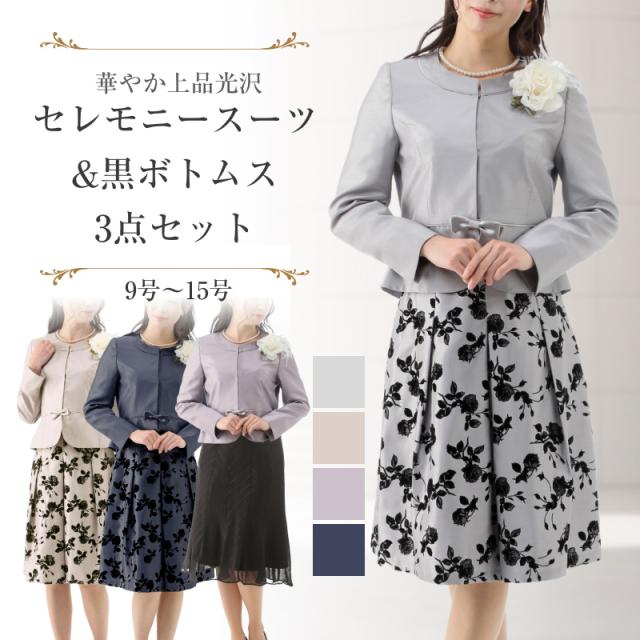 ミセス フォーマル 3点セット 選べるスカート シャンタン ノーカラージャケット スカートスーツ 結婚式 卒業式 入学式 披露宴 お呼ばれ 二次会 食事会 お宮参り 七五三 顔合わせ セレモニー レディース スーツ 9号 11号 13号 15号 ママ 母親 祖母 ミセス 姪 孫 服装 (mg1f