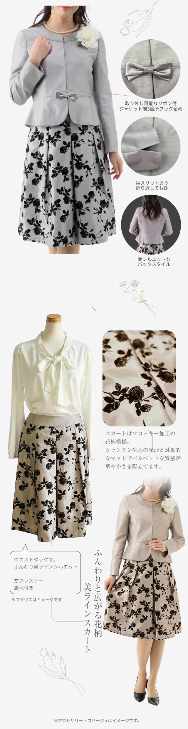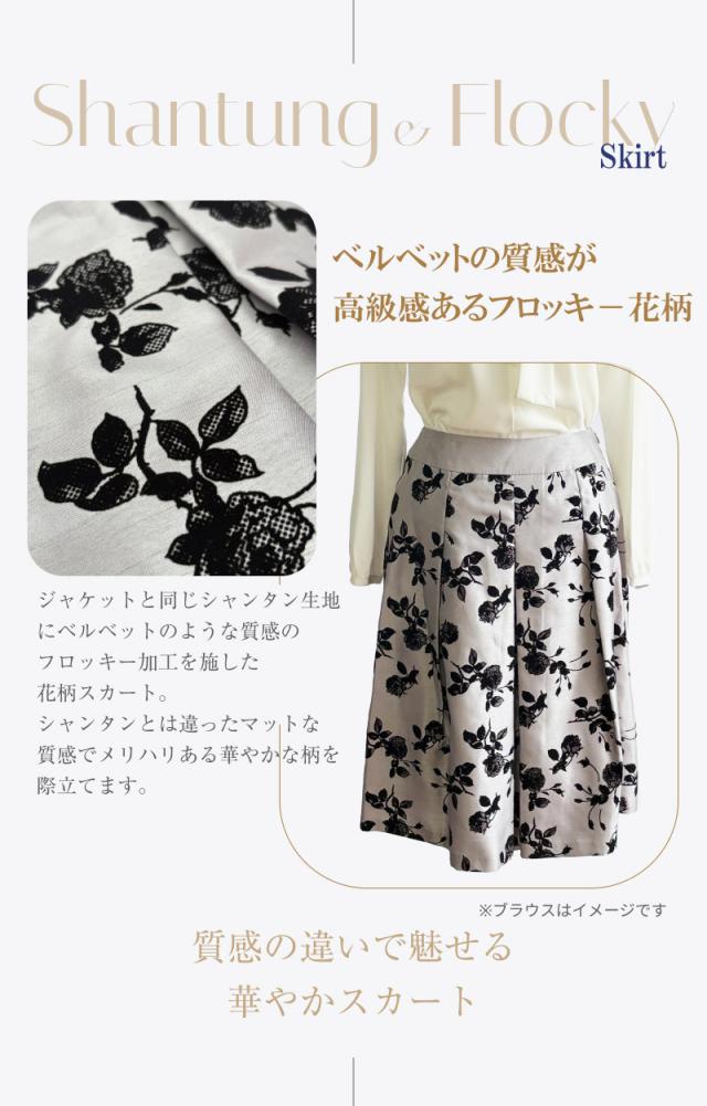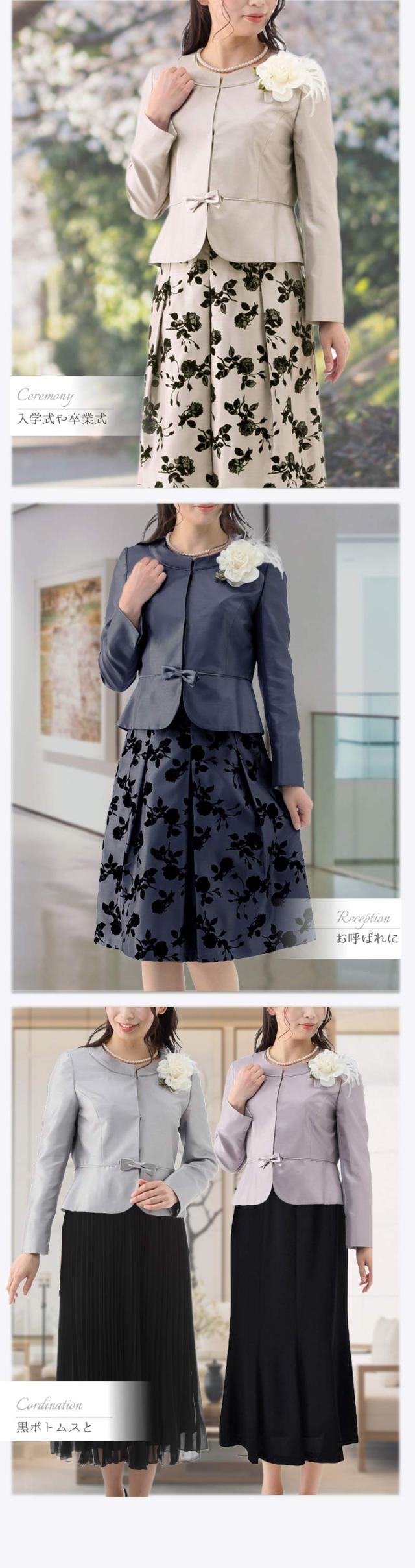 セレモニースーツの定番人気、シャンタン素材のスカートスーツに、