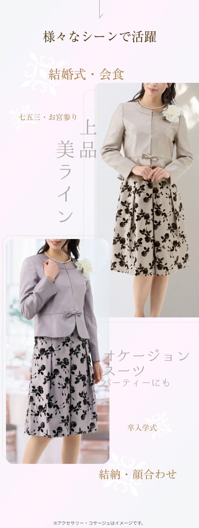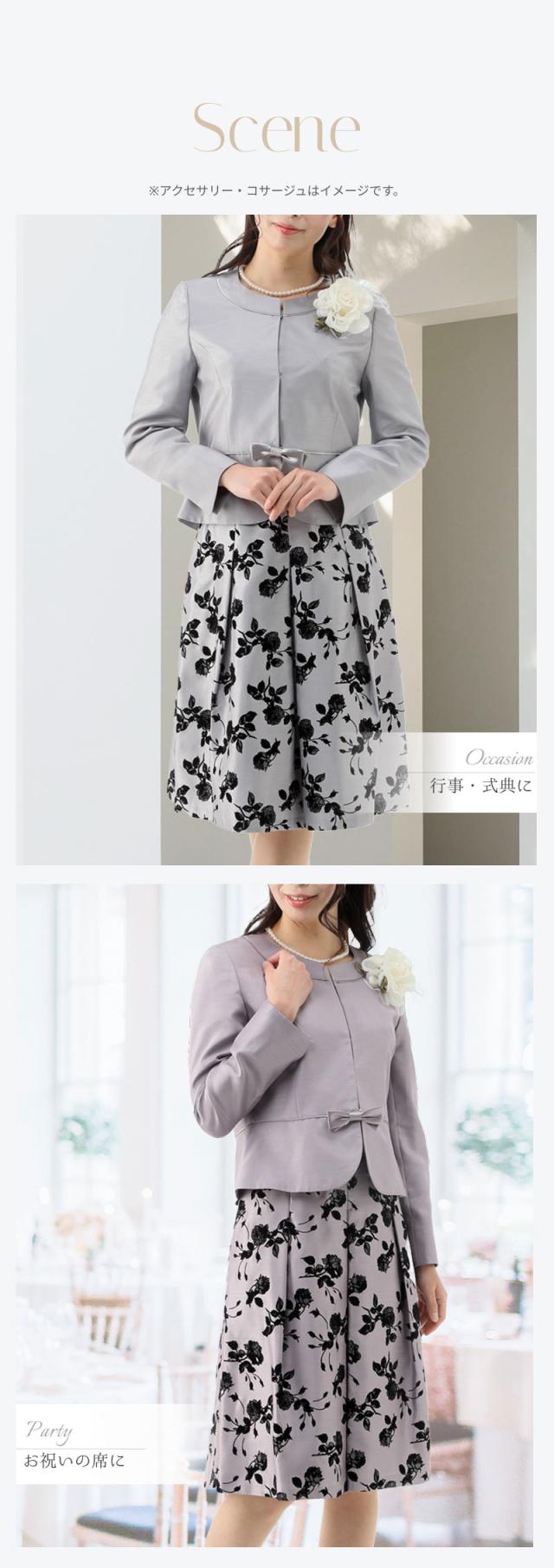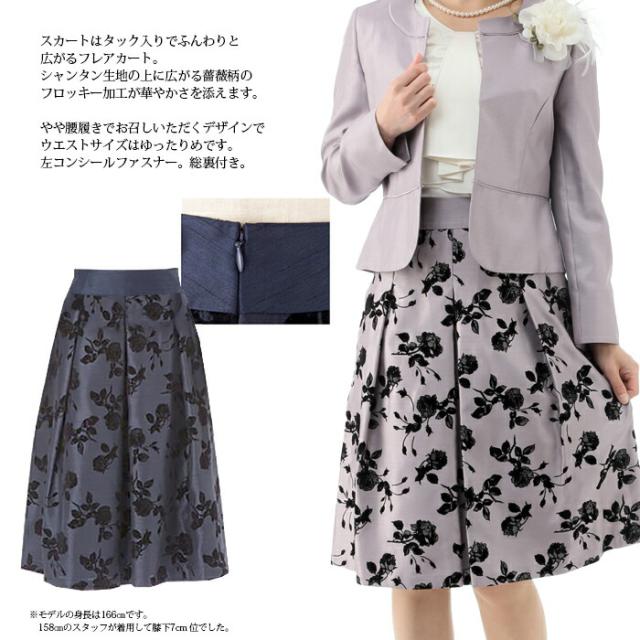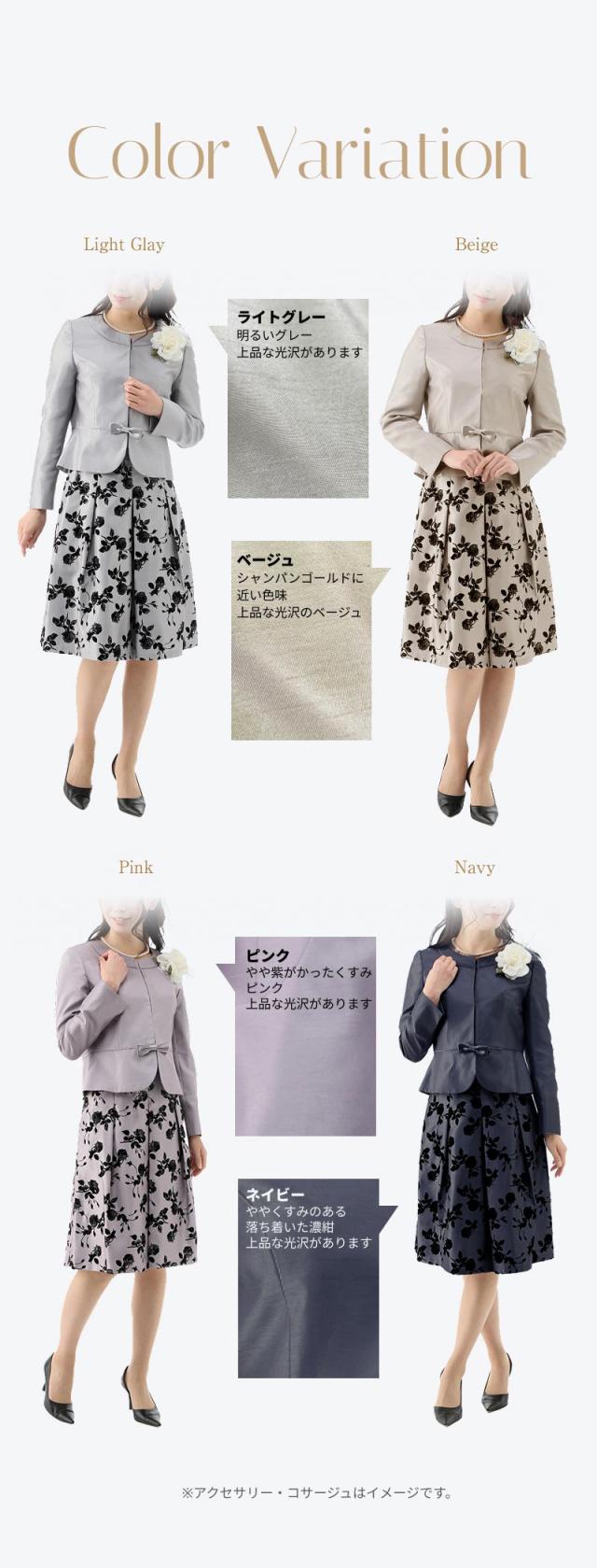 セレモニースーツの定番人気、シャンタン素材のスカートスーツに、