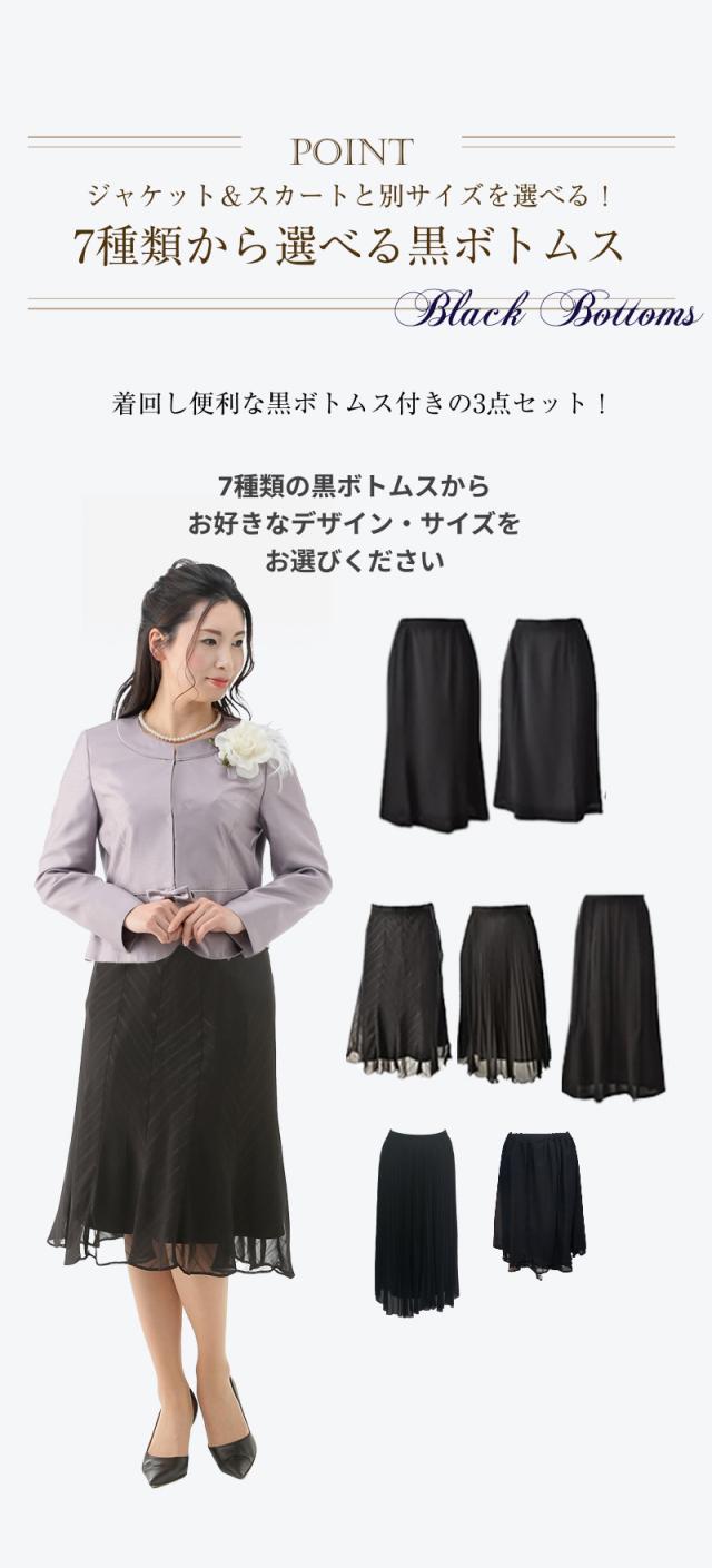 ブラックフォーマルにも使えるボトムがプラスされた3点セットスーツです。
