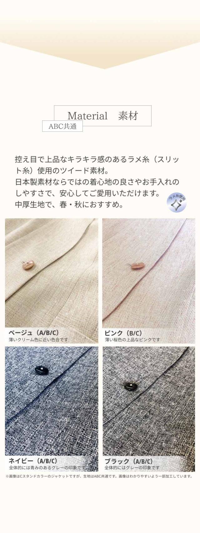 上品なキラキラ感のある日本製のラメ入りツイード素材を使用。