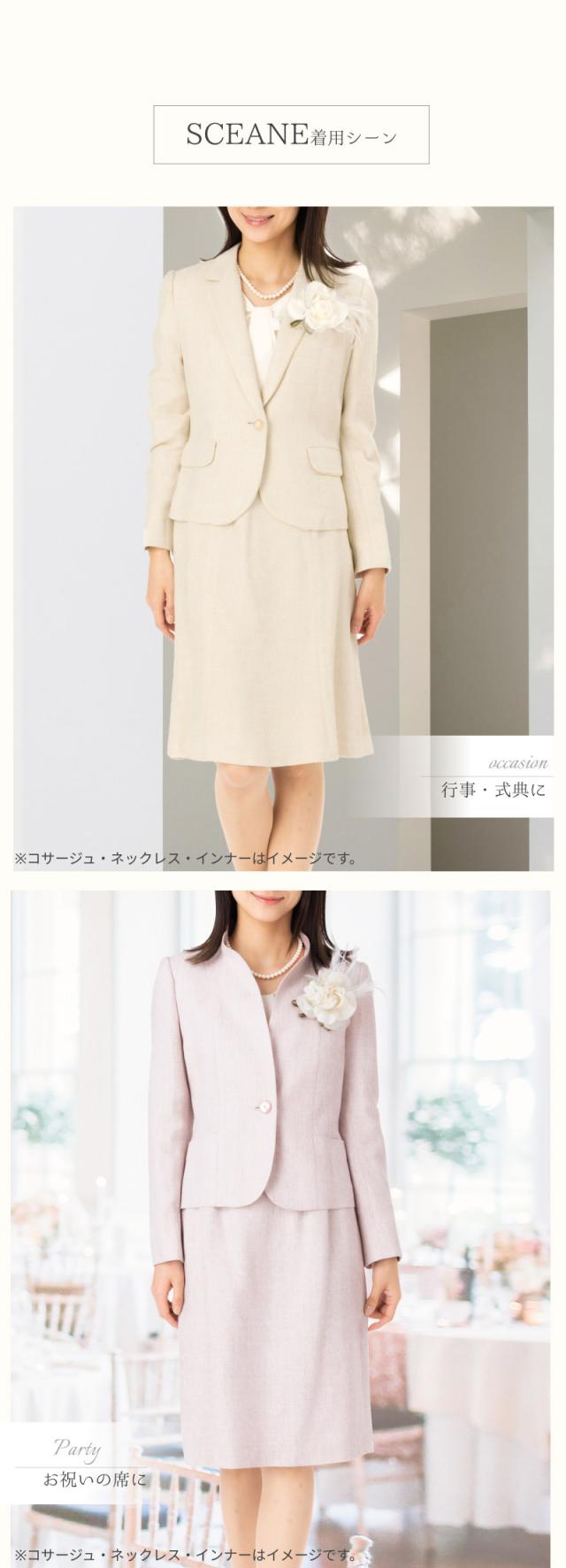 結婚式 披露宴 お呼ばれ 顔合わせ お宮参り 七五三 入学式 入園式 卒業式 卒園式 表彰式など、特別な日を彩る定番スカートスーツです。